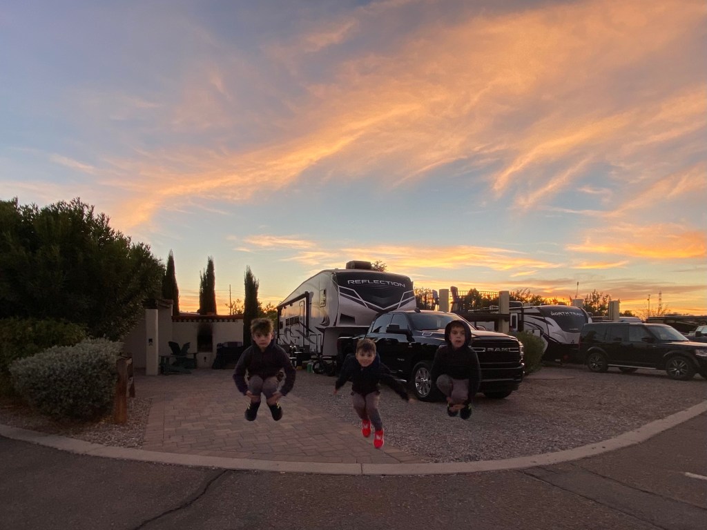 Tucson KOA: Best BBQ on site, hands down! It was incredible and right next to our campsite. Boys had a great time under the desert sky after a long drive.