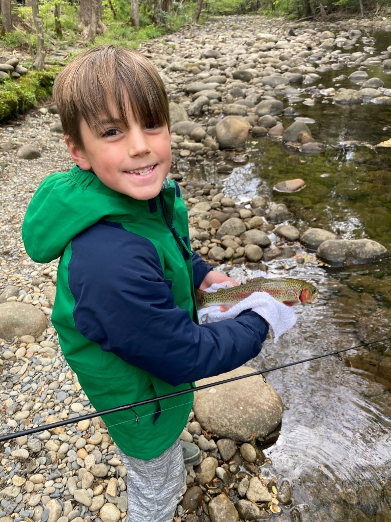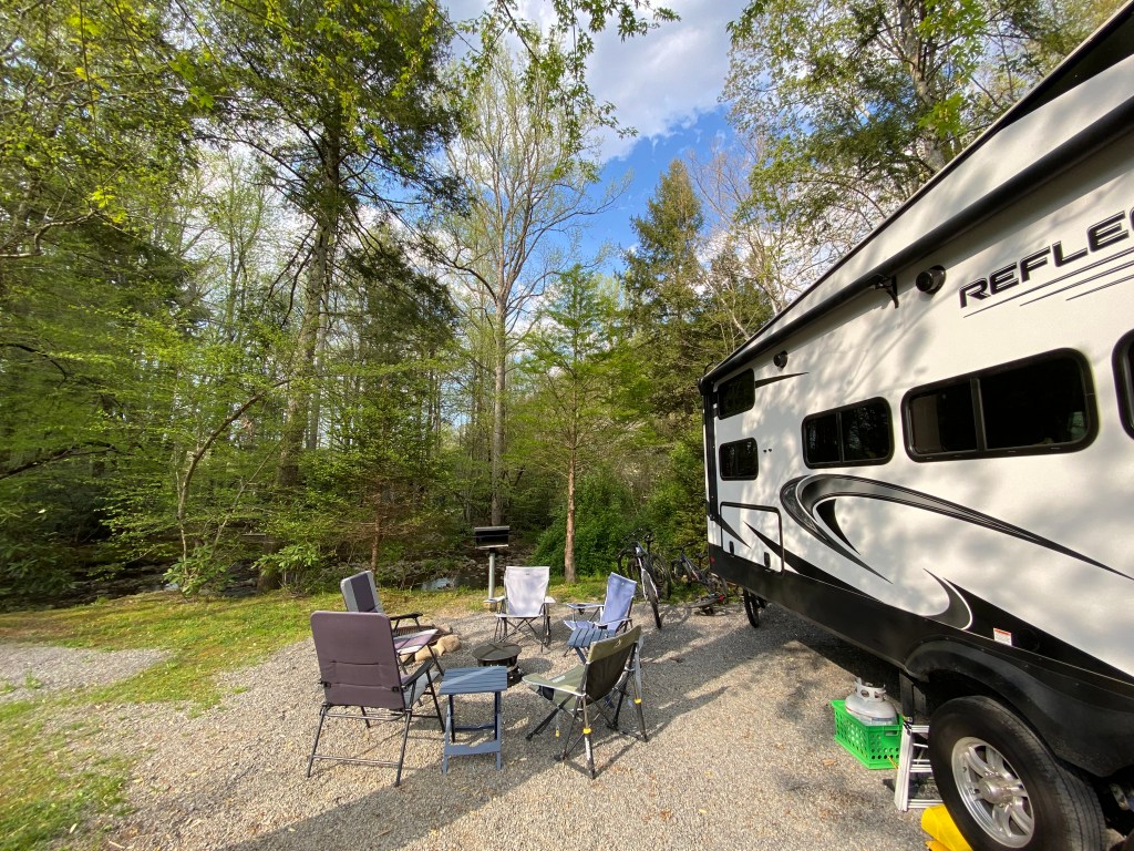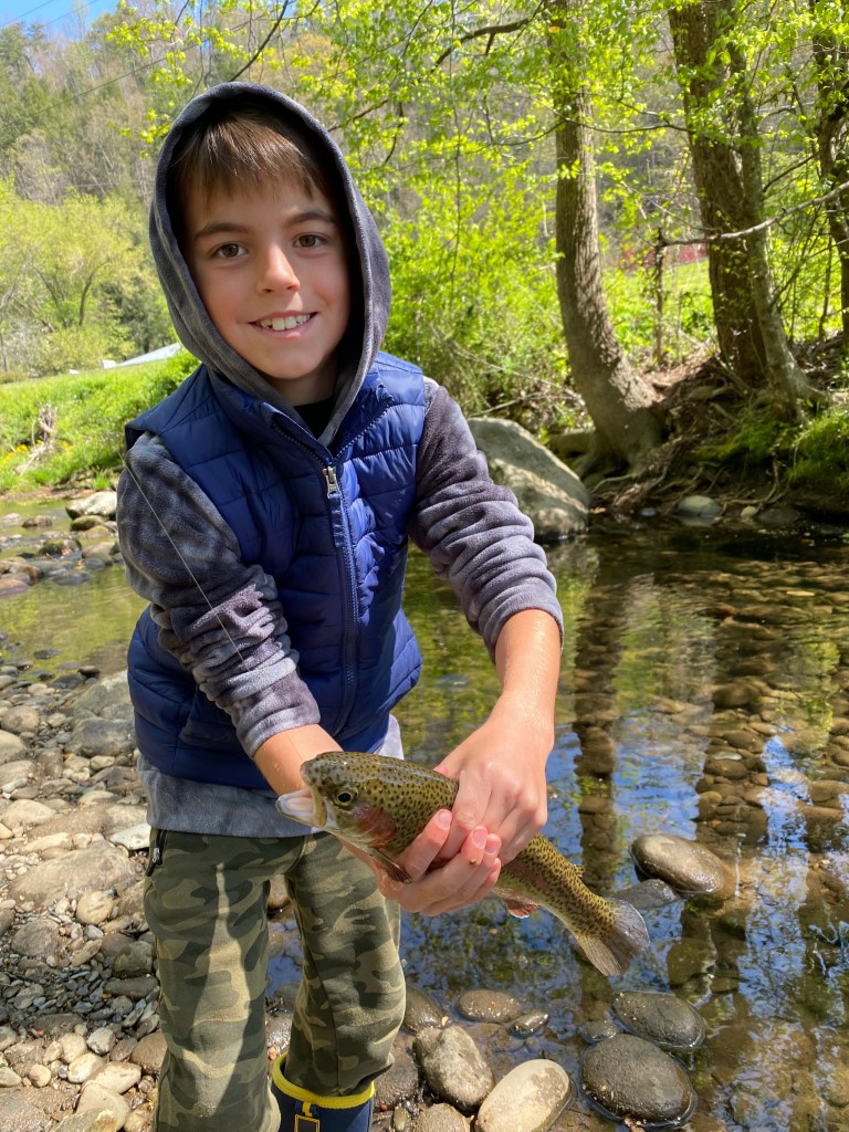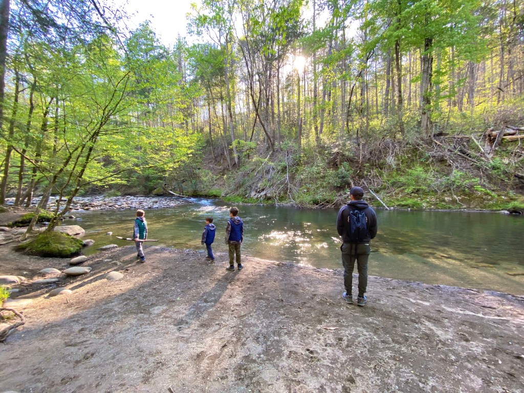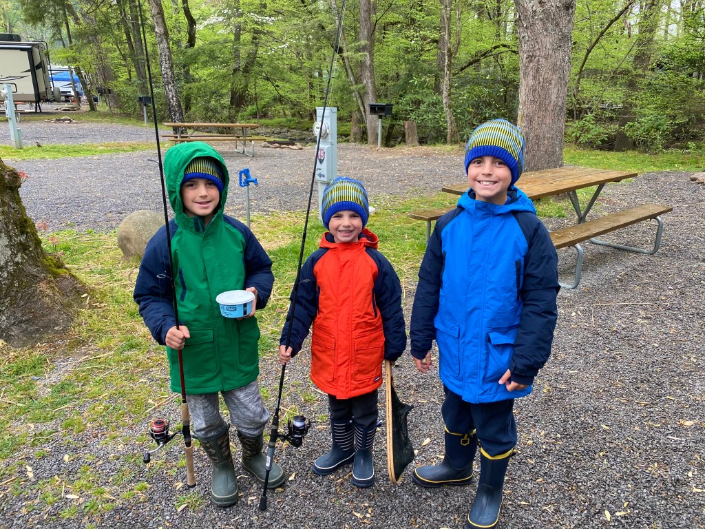 After a long drive, we arrived at Greenbrier Campground where we were scheduled for a week. Our RV spot was nestled up to the pigeon forge river. It was beautiful! I asked the camp host how the fishing was around the campground and he said excellent. The boys were excited.