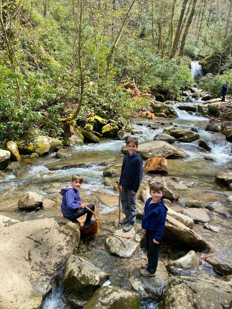 The first few days the boys spent tons of time on the playground meeting new friends and enjoying breaks from school. They also were getting some good fish! Over the weekend, we met a wonderful family from TN and the boys had a blast with their kids! They also homeschool and we had great conversation with them. We also made our way to Laurel Falls in the Smoky Mountains and had a wonderful hike.
