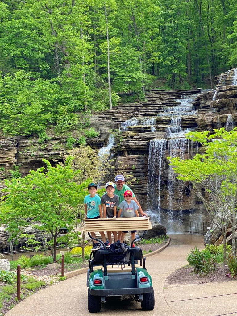 Big Cedar Lodge. WOW! We spent an entire day down near Big Cedar. We did a beautiful golf cart tour through the Ozarks, explored the area and spent way too much time at the “Fun Zone”. Bumper cars, Go Kart racing, arcade games, bowling… it was such a fun time! We love seeing the boys have a great time, and, see their little competitive spirits come alive as well.