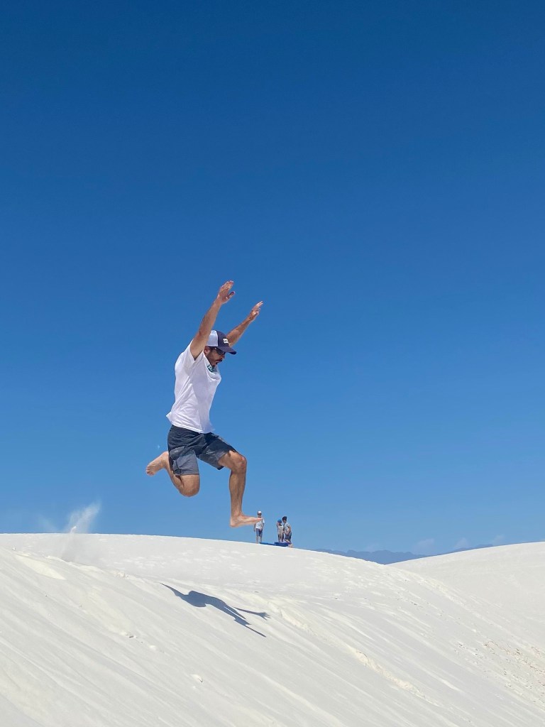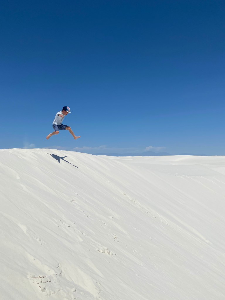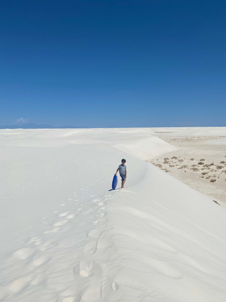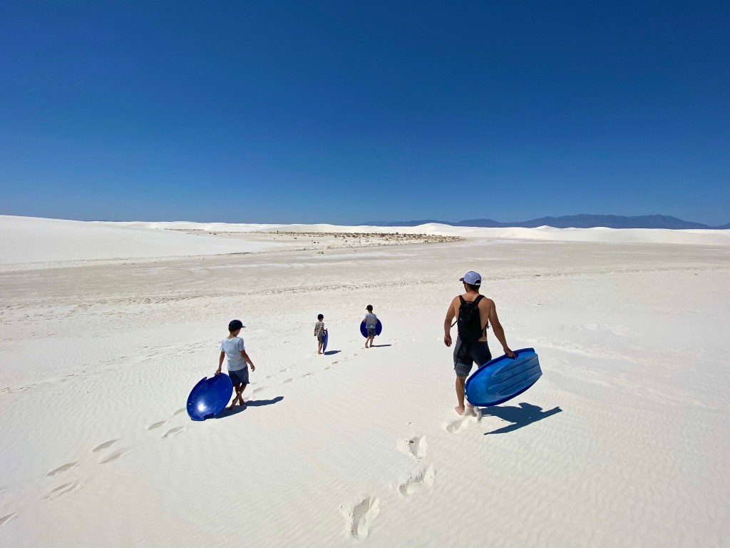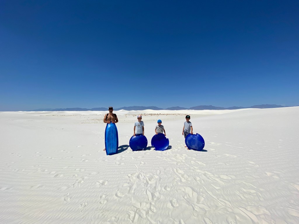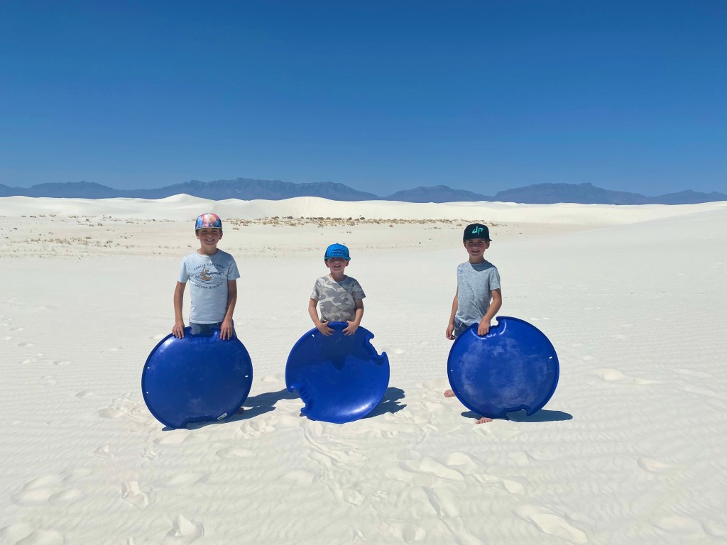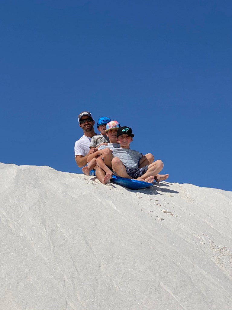 We woke up Friday morning and were ready to hit the National Park! We were told you could “sled” down the dunes in the park. So, we rented some sleds and took off for the day. It was really unique! Neither Meghan nor I had ever seen anything like it. The sand was so soft and we had a great time hiking the dunes and stopping for some rides. The boys wanted to go WAY OUT to some of the peaks. We love their enthusiasm to try new things and explore the “unknown”.